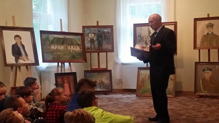 Następnie o swoich obrazach opowiadał pan Aleksy Matczak, którego wystawę pt. „Hej chłopcy, bagnet na broń” można jeszcze podziwiać do końca miesiąca.
