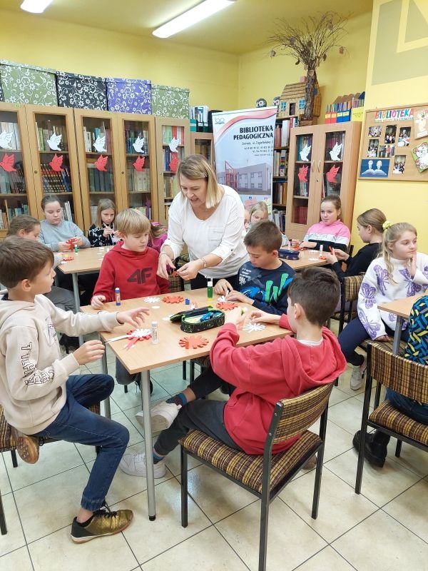 Narodowe Święto Niepodległości jest jedną z najważniejszych uroczystości państwowych w naszej Ojczyźnie. W ramach uczczenia 105. rocznicy odzyskania przez Polskę niepodległości, nasza placówka przygotowała zajęcia dla uczniów szkół podstawowych i przedszkoli pt.: „Polska, to kraj w którym mieszkamy oraz „Polska, to moja Ojczyzna”. W zajęciach wzięli udział uczniowie piątych klas, trzeciej i pierwszej ze Szkoły Podstawowej im. Marszałka Józefa Piłsudskiego w Wartkowicach oraz grupa przedszkolaków z Publicznego Przedszkola im. Króla Maciusia Pierwszego w Poddębicach, przy ulicy Miłej. Ogółem w warsztatach wzięło udział 80 uczniów