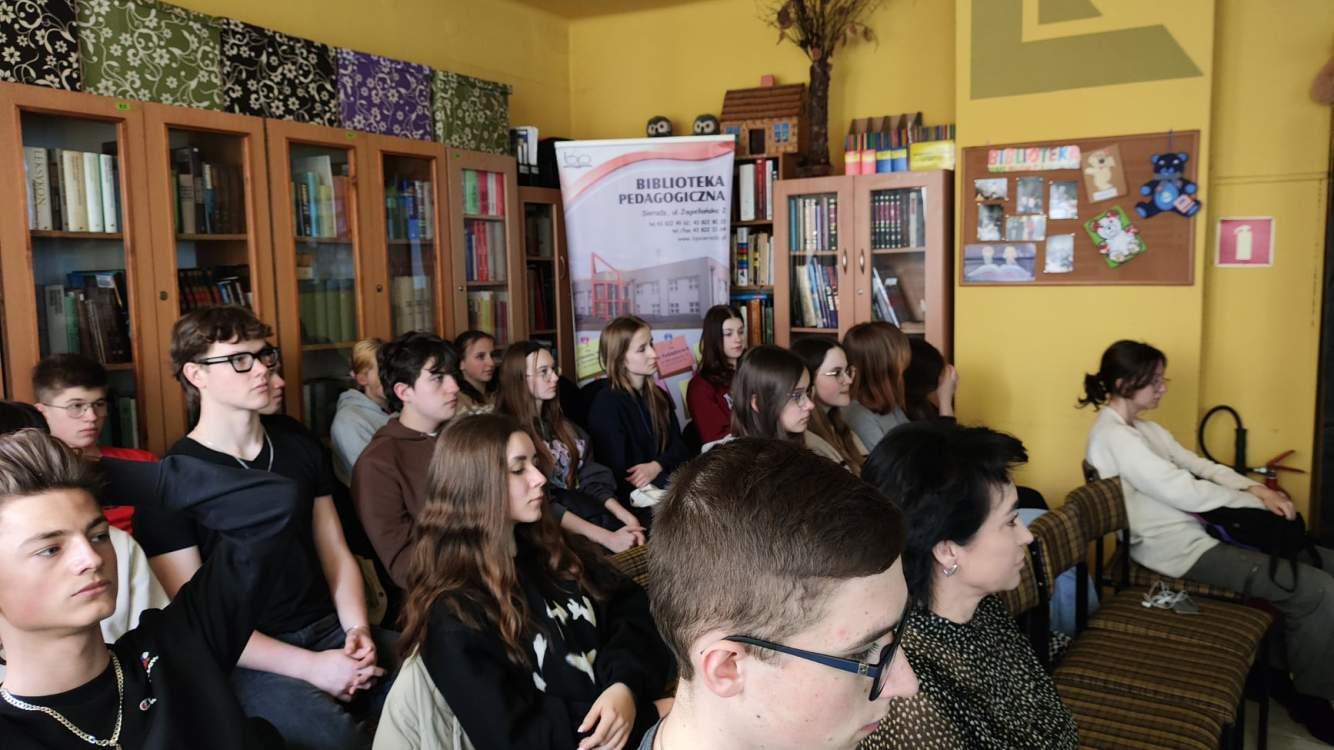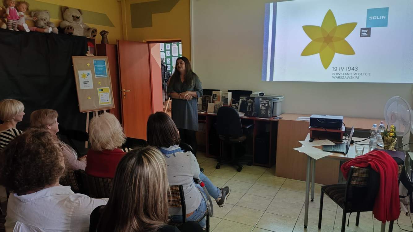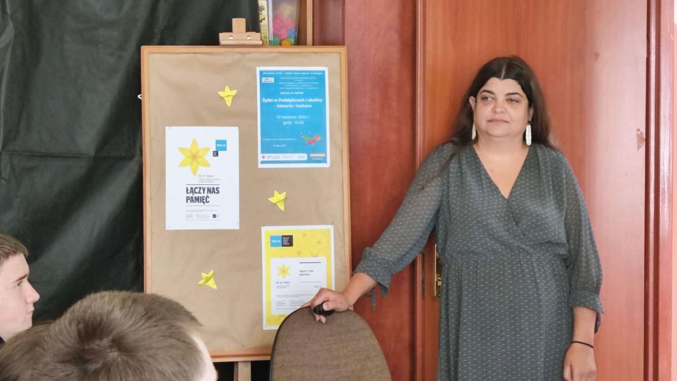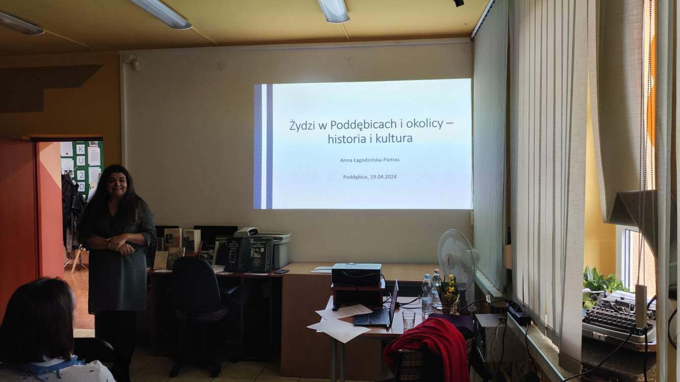 W dniu 19 kwietnia 2024 roku w CREWŁ Bibliotece Pedagogicznej w Poddębicach odbył się wykład zatytułowany „Żydzi w Poddębicach i okolicy – historia i kultura”. Prelekcję poprowadziła pani Anna Łagodzińska-Pietras, poddębiczanka, pracownik Muzeum Historii Miasta Łodzi oraz Muzeum Józefa Piłsudskiego w Sulejówku, absolwentka judaistyki na Uniwersytecie Jagiellońskim w Krakowie. Spotkanie zostało zorganizowane w ramach realizacji zadania z Budżetu Obywatelskiego „Łódzkie na plus na rok 2024” pod nazwą „Jesteśmy stąd – nasza mała wielka Ojczyzna”. W ramach tej inicjatywy pani Anna poprowadziła tego dnia trzy prelekcje: dwie dla młodzieży z Liceum Ogólnokształcącego w Poddębicach i Zespołu Szkół Ponadpodstawowych w Poddębicach oraz jedno popołudniowe spotkanie otwarte dla zainteresowanych mieszkańców.