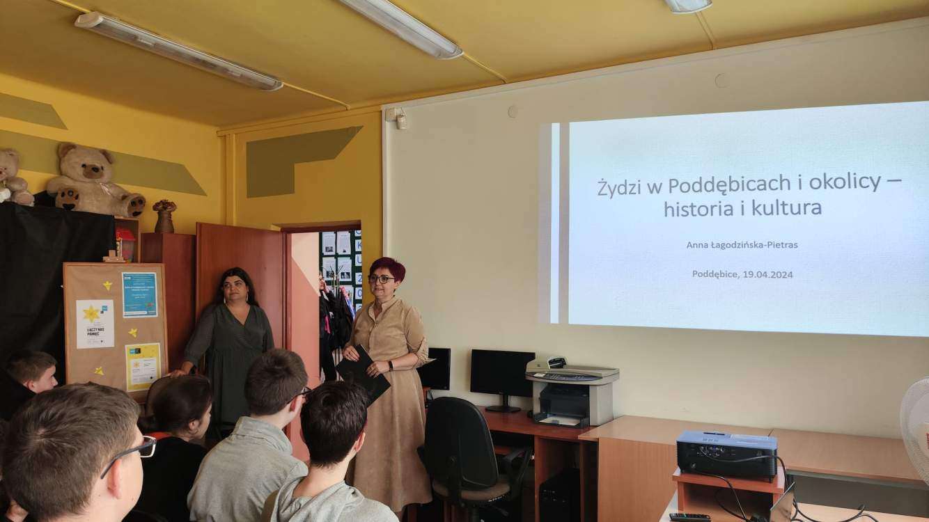 Podczas wykładu pani Anna opowiedziała o historii społeczności żydowskiej w Poddębicach, kiedy pojawili się pierwsi Żydzi w tym regionie, jakie zawody uprawiali oraz gdzie mieszkali. Przedstawiła również bogactwo kultury i religii żydowskiej oraz wspomniała tragiczne wydarzenia z okresu II wojny światowej, kiedy wszyscy Żydzi z Poddębic zostali zamordowani przez niemieckich nazistów.