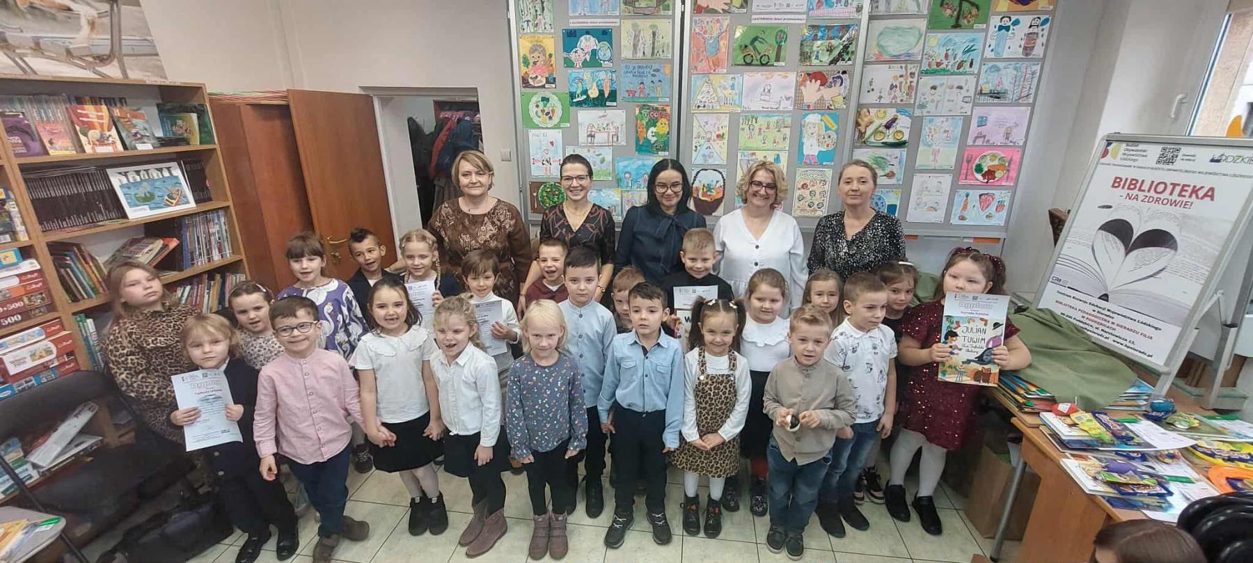 W piątek 14 listopada w CREWŁ BP Filia w Poddębicach odbył się Finał Konkursu plastycznego „Zdrowo żyjemy i zdrowo jemy!”. Konkurs zorganizowany był w ramach realizacji zadania pn. „Biblioteka – na zdrowie!” z Budżetu Obywatelskiego Województwa Łódzkiego na rok 2025. Na konkurs wpłynęło: 62 prace w kategorii: przedszkola oraz 87 prac w kategorii klasy 1-3 ze szkół i przedszkoli powiatu poddębickiego.