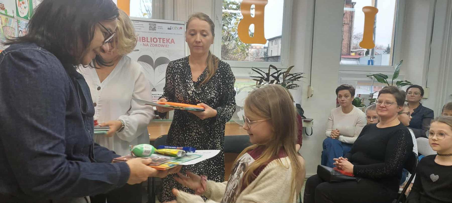 Laureaci otrzymali nagrody książkowe, gadżety sportowe (piłki, skakanki gniotki, jojo itp.), wszyscy uczestnicy za udział w Konkursie otrzymali pamiątkowe dyplomy, nagrody książkowe oraz opaski odblaskowe z logo zadania i BO oraz musy owocowe i batoniki finansowane z zadania „Biblioteka – na zdrowie!”.